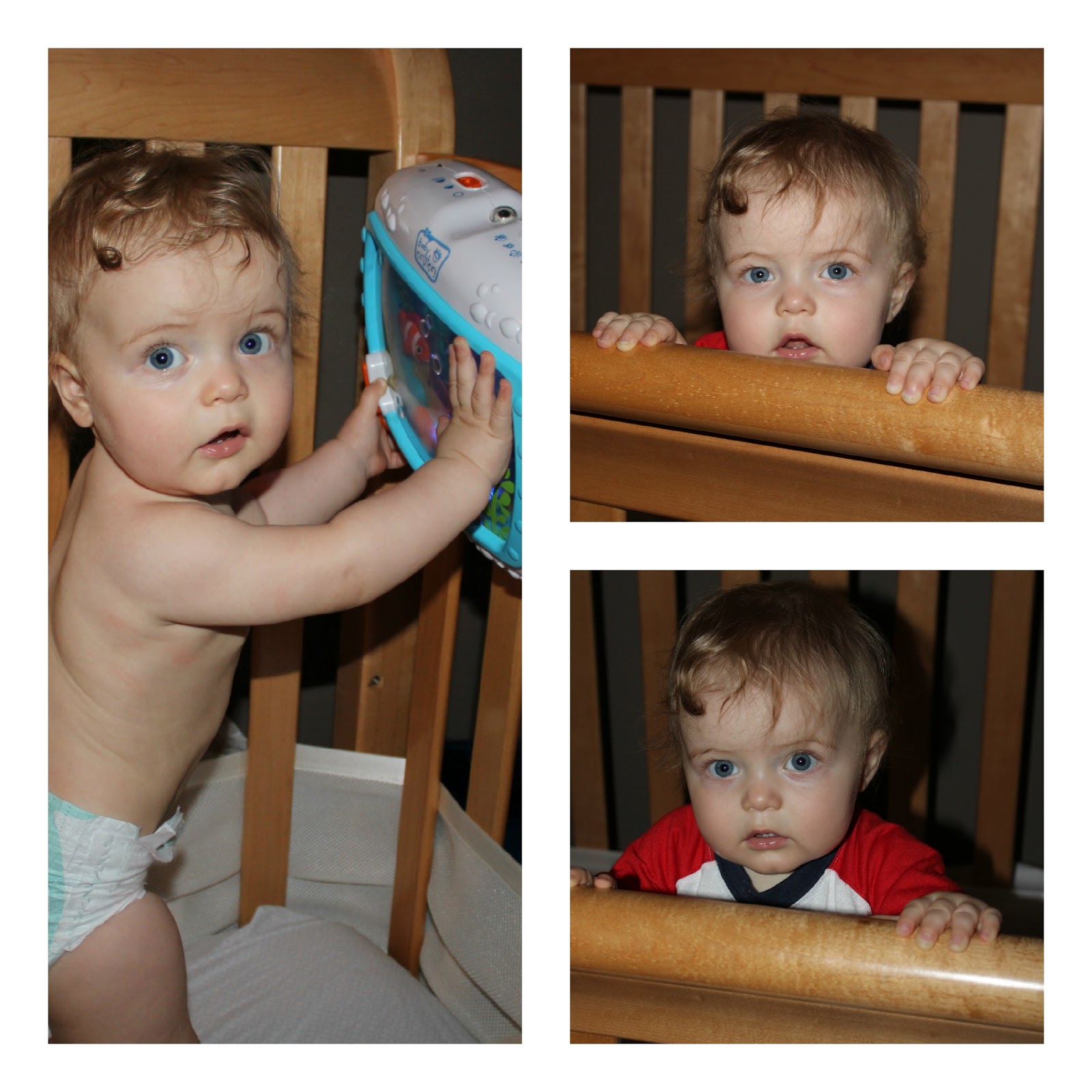 The next night same thing only this time he learned how to turn on his little sea sound soother which he loves to turn on and then off and then on and then back off again. He apparently likes repetition. So needless to say, climbing in the crib is a daily habit but such a fun first because it's OH. SO. CUTE. He makes Dave and I smile all the time!